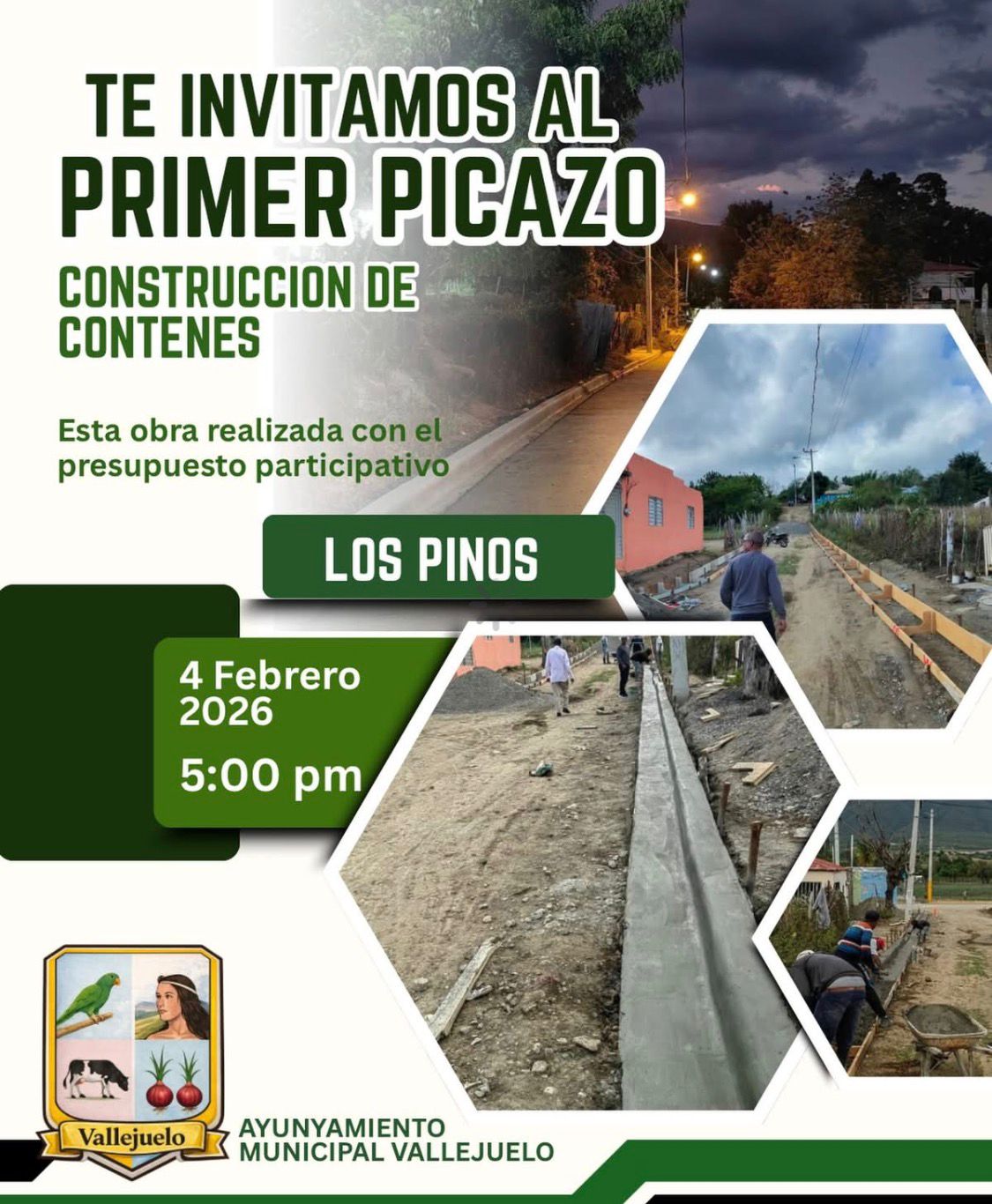 La Alcaldía invita a toda la comunidad a participar en el acto del primer picazo de la construcción de contenes en el sector Los Pinos, una obra que marcará un avance significativo en la infraestructura y la seguridad vial de la zona.