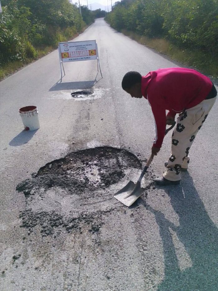 El pasado 28 de Diciembre se Realizaron los trabajo de bacheo de la Carretera que conecta Vallejuelo San Juan