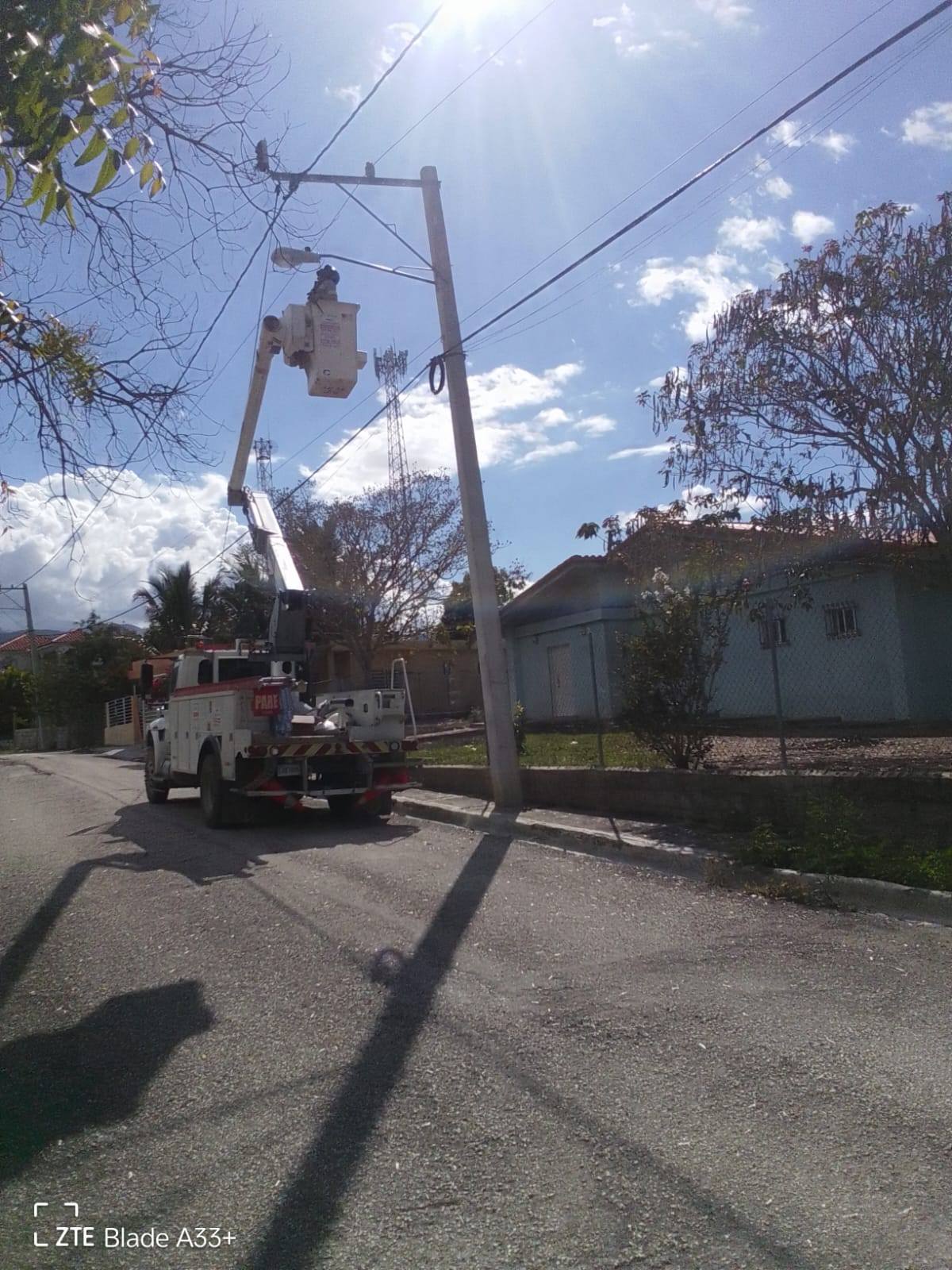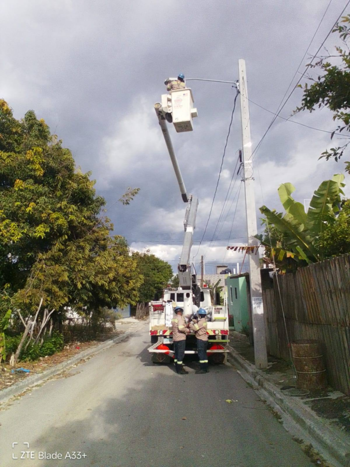 Estas labores se realizan con el apoyo de EDESUR Dominicana, como parte de un esfuerzo conjunto orientado a restablecer el servicio de alumbrado público y garantizar espacios más seguros para la población.